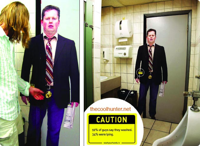 I vostri clienti difettano in tema di igiene personale? Volete sensibilizzarli sul tema quando frequentano il bagno del vostro locale? Prendete esempio da questa originale campagna intitolata non a caso Wash your hand (Lavati le mani) realizzata tempo fa dalla JWT per i pubblici esercizi di Toronto in Canada.