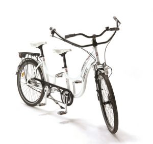 La Hugbike nasce dal “sogno” di un padre che desiderava fortemente pedalare con il figlio autistico. Così Mario Paganessi, direttore e fondatore di Oltre il Labirinto e papà di Gianpietro, ha creato questo speciale tandem in cui il guidatore “abbraccia” da dietro il passeggero. Il prototipo è assemblato dai ragazzi della Fondazione Oltre il Labirinto Onlus sotto la supervisione di operai specializzati.