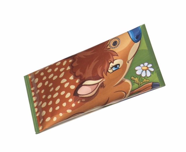 Nella nuova collezione “Gli Amici del Bosco” le immagini gioiose presenti sulle confezioni sono 16 e riguardano altrettanti protagonisti come Tasso, Lepre, Serpente, Orso, Gnomo, Talpa, Cinghiale, Coccinella, Cerbiatto, Volpe, Riccio, Gufo, Cinciallegra, Lupo, Rana e Scoiattolo.