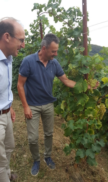 La vicinanza della montagna resta sempre l’elemento che determina la differenza perché la sera scivola verso la collina aria che porta frescura, abbassando la temperatura fino a 15 o 16 gradi rispetto al giorno. In questo periodo si assiste ad una buona escursione termica con notti fresche e giornate miti, si sa attendendo un po’ di pioggia per avere un miglior completamento di maturazione dell’acino, ma nel complesso le piante non sono in sofferenza.