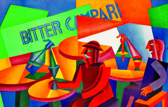 perché esposta sui palazzi o nelle vetrine sotto gli occhi di tutti invece che in gallerie e musei, è stato il Futurismo. Fortunato Depero già nel 1919 creò la Casa d’Arte Futurista, antesignana delle odierne agenzie di pubblicità. Tra i maggiori suoi committenti c’era Campari per il quale disegnò anche, nel 1932, la bottiglietta del Camparisoda. Noto per la sua collaborazione con la Rinascente durata una vita, Marcello Dudovich negli anni ‘30 firmò manifesti per Martini e Campari. Nel Dopoguerra e con il boom economico nacquero in Italia i primi studi pubblicitari. Armando Testa, grande comunicatore pubblicitario, firmò campagne storiche per Martini & Rossi e il celeberrimo manifesto per l’aperitivo Punt e Mes: una sfera ed una mezza sfera rosse su sfondo bianco, a evocare il payoff: “un punto di amaro e mezzo di dolce”. Nel 1957 nasce Carosello e il beverage passa sugli schermi, con spot in bianco e nero che raccontano una storia. In primo piano ci sono ancora amari e aperitivi, dal Cynar di Ernesto Calindri al Biancosarti del Tenente Sheridan di Ubaldo Lay. Con il tempo, tv e web hanno di fatto limitato la rilevanza degli affiches pubblicitari, che però stanno vivendo una seconda stagione – più veloce ed effimera nella concezione e nel tempo di fruizione – grazie al digital signage, la cartellonistica elettronica sempre più presente nelle nostre città.