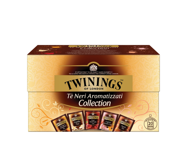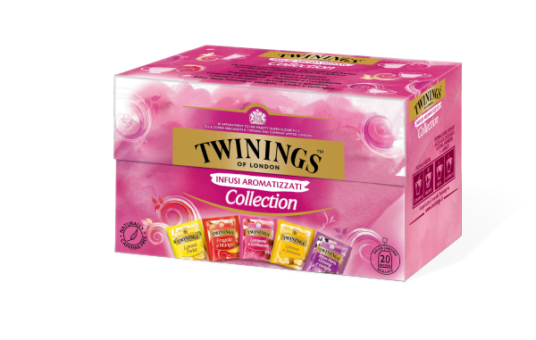 Tutte le Collection Twinings rinnovano la loro veste grafica. Un design moderno e contemporaneo che esalta, con immagini raffinate ed eleganti, il mondo Twinings, il suo gusto e i suoi 300 anni di storia. La raffinatezza delle confezioni viene esaltata dall’utilizzo del motivo decorativo sullo sfondo e dalla rappresentazione a ventaglio delle singole bustine, per mostrare la varietà delle miscele e richiamare alla magia dello spot Tealand. Nelle nuove confezioni, gli involucri di plastica che separavano le varie miscele sono stati sostituiti con le bustine metallizzate sigillate singolarmente, che consentono una migliore conservazione del gusto ed evitano la contaminazione tra i diversi aromi.