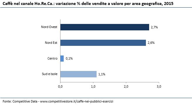 Fanno registrare le performance migliori, in termini di crescita media dei ricavi nel canale Ho.Re.Ca., nel triennio 2013-2015, le torrefazioni Costadoro (+16,1%), Torrefazione Moka Sir’s (+13,4%), Julius Meinl (+12,3%). Tra le aziende leader è Lavazza la best performer con una crescita media annua del 3,2%.