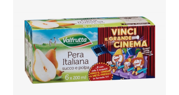 Con la promozione a premi Vinci il grande Cinema, fino a giugno 2017 all’interno dei cluster in cartone dei brik Valfrutta Succo e Polpa– nei formati 3x200 ml e 6x200 ml e nei gusti Albicocca, Pera e Pesca – sarà presente un’area “gratta e vinci” che una volta rimossa può far vincere subito 4 buoni cinema Stardust validi tutti i giorni per i film in 2D in programmazione, previa registrazione del codice vincente sul sito www.valfruttaecinema.it