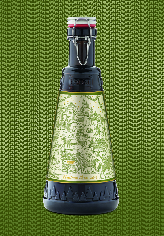 La ricetta della Birra di Natale, fin dalla prima cottura, non è mai stata cambiata. Dal colore marcatamente ambrato, è una birra gradevolmente luppolata con un aroma inimitabile dato dalle migliori miscele di malto. Per questo la Birra di Natale FORST è l’accompagnamento ideale per gustose pietanze natalizie. La decorazione scelta per il Natale 2016 si ispirerà alle immagini che, nella vecchia tradizione altoatesina, servivano a realizzare il ricamo su cuoio. Nel disegno sono raffigurati elementi che si trovano in diversi ambienti all’interno dello stabilimento di Birra FORST, come le figure che trasportano botti di birra su carri trainati da cavalli, gli edifici ornati con cura dello stabilimento originario, con il pittoresco campanile a bulbo. In sintesi, tutta la vita di un tempo all’interno di Birra FORST, seguendo il motto: “Nella dedizione il successo”.