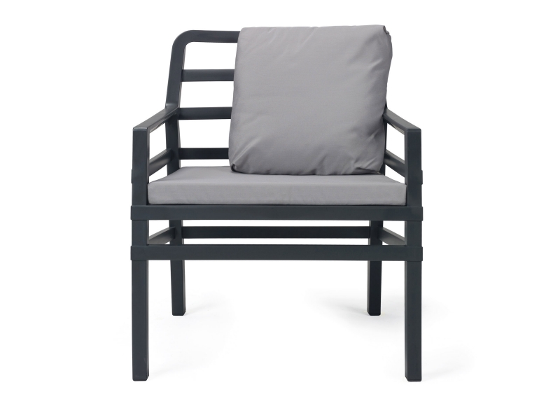 Lo stesso delicato equilibrio è stato mantenuto nella scelta di complementi ed accessori, selezionati tra i più noti marchi di design contemporaneo, in particolare per l’arredo dei terrazzi è stato scelta Aria di Nardi (www.nardigarden.com) nei toni dell’antracite, un’ampia poltroncina per esterni con cuscini in tessuto realizzata in resina fiberglass con struttura a doghe. Con la poltroncina anche il tavolino d’appoggio, anch’esso dogato. Mood, toni e finitura mat di poltroncina e tavolino ben si adattano al contrasto materico con il legno oltre che ad essere elementi d’arredo studiati specificatamente per l’outdoor essendo inalterabili e resistenti a qualsiasi temperatura. Non richiedono, inoltre, alcuna manutenzione e sono completamente riciclabili.