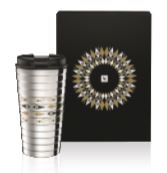Touch Travel Mug (Limited Edition) - Perfetta per il pendolare quotidiano, anche la Travel Mug Touch Limited Edition è decorata da Lorenzo Petrantoni, con un motivo nero e oro, sottile ed elegante. Con una generosa capacità di 345ml, la Mug da Viaggio Touch mantiene il caffè Nespresso perfettamente caldo (o freddo) durante gli spostamenti.
