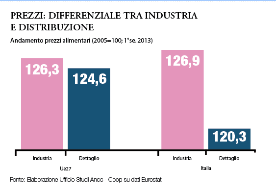 E questo nonostante ad oggi i prezzi nel nostro paese si siano impennati molto meno che nel resto d’Europa. «Grazie alla distribuzione- sottolinea Pedroni – che ha rinunciato ben più dell’industria alla propria redditività. Come dimostra il delta del 6,6% tra l’una e l’altra (tav. pag 16). Il mio auspicio è che si esca da questa unilateralità, facendo un patto di filiera che porti l’industria a ridurre i prezzi e i margini in percentuale -scommettendo su un possibile aumento dei volumi – e che consenta alla GDO di trasferire ai consumatori un vantaggio concreto. Ritengo sia questa l’unica strada percorribile se si vuole veramente far ripartire i consumi».