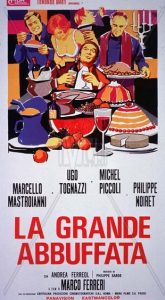 Inizio d’obbligo con “La grande abbuffata”, del 1973, diretto da Marco Ferreri, e con un cast d’eccezione: Ugo Tognazzi, Marcello Mastroianni, Michel Piccoli e Philippe Noiret. Il cinema grottesco e provocatorio di Ferreri ci presenta una cena come teatro di un suicidio collettivo. I quattro protagonisti, infatti, tutti benestanti ma profondamente annoiati dalla vita, decidono di preparare una cena pantagruelica con lo scopo di mangiare fino a morire. Da notare il ruolo di Ugo Tognazzi: proprietario di un ristorante e grande chef, quasi come nella vita reale.