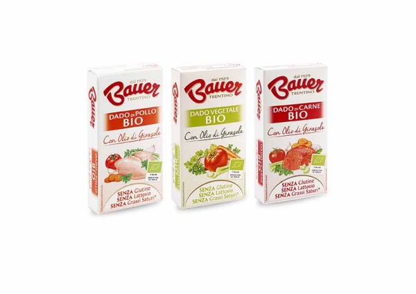 Oggi Bauer compie un ulteriore passo in avanti, rinnovando l'intera gamma dei suoi dadi: nascono i nuovi Dadi Bauer, realizzati esclusivamente con OLIO DI SEMI DI GIRASOLE in sostituzione del palma. Il Dado Vegetale, il Dado di Carne, il Dado di Pollo, quello ai Funghi porcini e quello a base di Pesce, così come i Dadi della linea Biologica: oggi tutti questi prodotti sono preparati solo con olio di girasole, per rispondere alle richieste del consumatore e garantire l'ottenimento di un brodo dal sapore sempre più vicino a quello fatto in casa.
