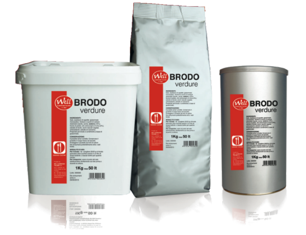 Già dagli anni 70, però, l’attenzione si concentrò, in particolare,su alcuni prodotti che stavano vivendo un grande sviluppo: i preparati per brodo e condimento. Da qui la nascita del Brodo Granulare Well che, dopo l’ingresso dei figli in Azienda e la crescita dell’esperienza e della produzione “su misura”, divenne il centro dell’attività aziendale. Oggi l’Azienda, che mantiene il suo core business nella ricerca e consulenza alla grande industria alimentare con la produzione di sistemi aromatici personalizzati, ha sviluppato specifiche linee di prodotto dedicate ai Canali Horeca e Retail, a marchio proprio e a marchio di terzi, come ad esempio le due referenze di Brodi Granulari, alla carne e alle verdure, sviluppate a Marchio Qualitaly per la Cooperativa Italiana Catering (CIC).