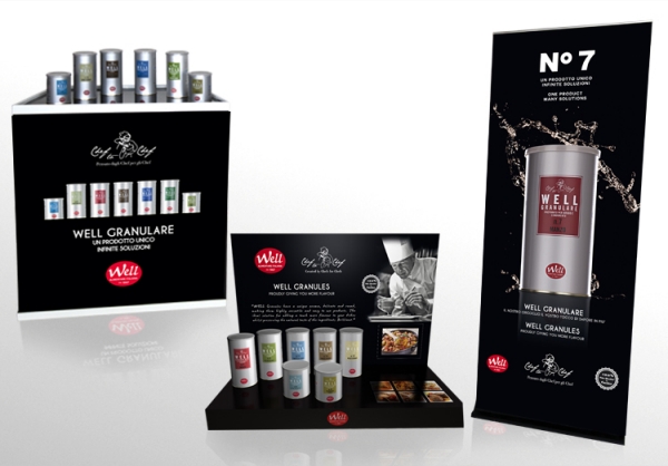 Una Linea Premium di prodotti la cui punta di diamante è Well Granulare N°7 Manzo, un preparato per brodo e condimento con l’8% di estratto di carne di primissima qualità e un pizzico di zafferano, che va oltre il concetto di “brodo” tradizionale, per proporsi come insaporitore universale, da usarsi, oltre che per preparare eccellenti brodi,in ogni preparazione al posto del sale, prima o durante la cottura. A rendere unica la linea Chef to Chef sono gli ingredienti di primissima qualità, la loro sapiente e ricercata combinazione e una innovativa tecnologia produttiva a basse temperature che ha permesso di sostituire gli aromi artificiali con gli aromi naturali (succhi ed estratti) ed ottenere così un prodotto dal profilo aromatico più naturale, armonioso e meno aggressivo. Il progetto Chef to Chef è anche il risultato di un’importante strategia di marketing. La qualità dei prodotti doveva essere percepita immediatamente: per questo Well ha deciso di “vestire” le referenze d’argento,colore insolito per la categoria ma distintivo e riconosciuto come tecnico e di valore.