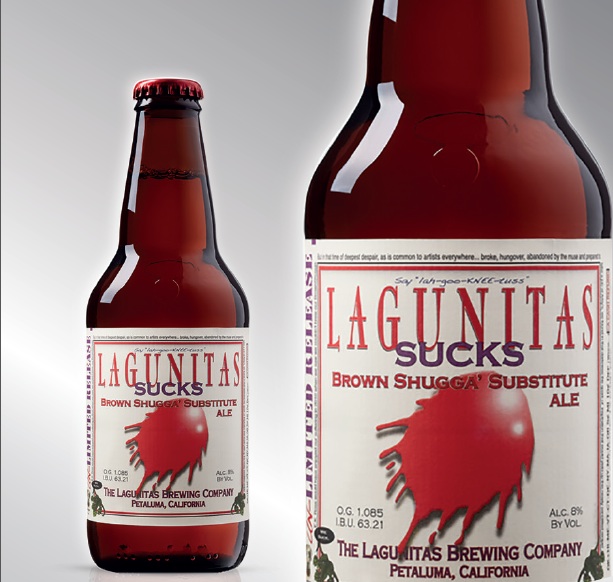 - Lagunitas Sucks: sorprende per l’intensità del suo profilo aromatico, ricco di agrumi, sentori balsamici eaghi di pino. Nasce quasi per sbaglio, per sostituire la sorella maggiore Brown Shugga. Quando nel 2011 i Lagunitas men si accorsero che, a causa dei lavori di ampliamento del nuovo birrificio, non erano in grado di produrre la quantità di Shugga’ necessaria a soddisfare i fedeli consumatori, decisero di comunicare loro la notizia addolcendoli con l’introduzione di questa nuova Double IPA. “We suck for not doing it” – affermarono, e per dimostrare le loro sincere scuse portarono sul mercato questa nuova birra frutto dell’unione tra orzo, segale, frumento e avena. Il ricorso al dry hopping le conferisce un gusto piuttosto amaro caratterizzato da note tropicali di pompelmo e litchi. È disponibile nella versione in bottiglia di vetro da 35,5cl. È ottima con la lonza di maiale e si sposa bene sia con cibi piccanti sia con cibi saporiti.