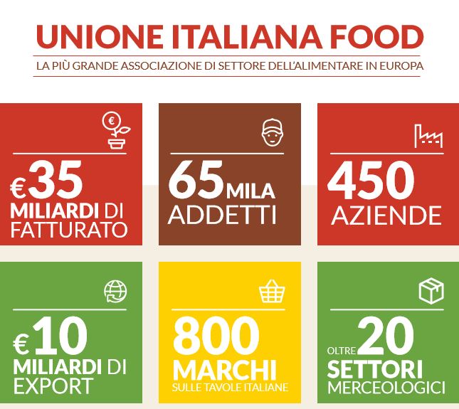 Unione Italiana Food nasce dalla collaborazione di due fra le più rappresentative associazioni di categoria dell’alimentare italiano, AIDEPI (Associazione delle Industrie del Dolce e della Pasta Italiane) e AIIPA (Associazione Italiana Industrie Prodotti Alimentari). Rappresenta 450 imprese di oltre 20 settori merceologici, che danno lavoro a 65.000 persone e sviluppano un fatturato di oltre 35 miliardi di euro, di cui 10 miliardi di export. Parliamo di circa 800 brand che finiscono sulle tavole degli italiani e degli amanti del cibo italiano di tutto il mondo.