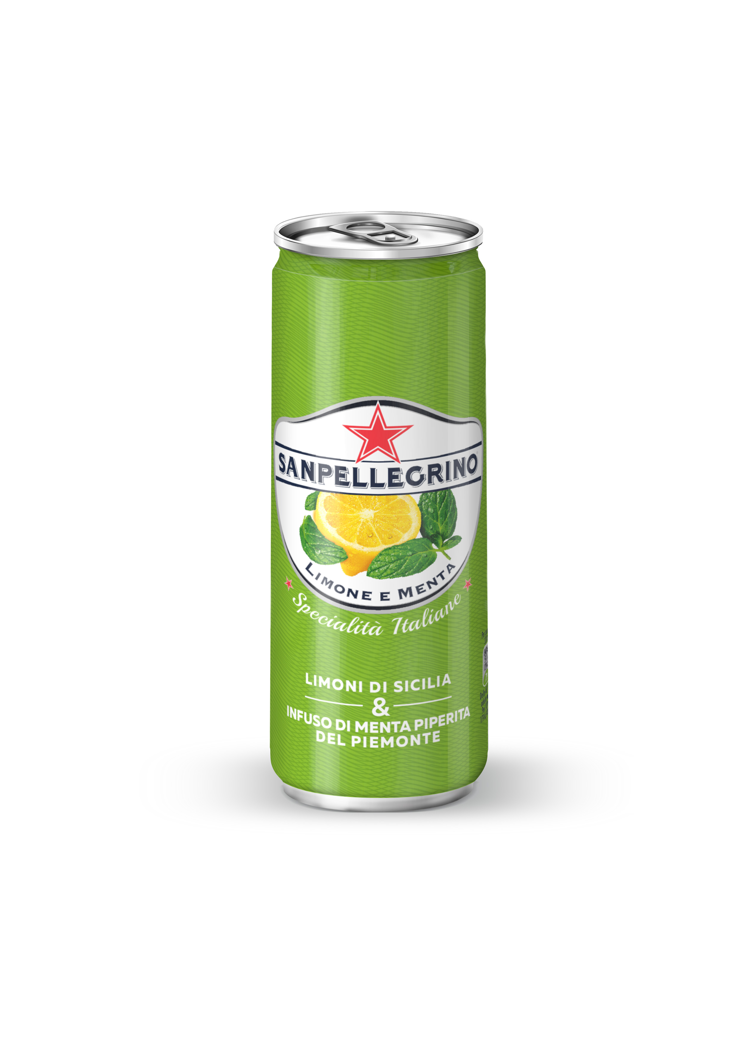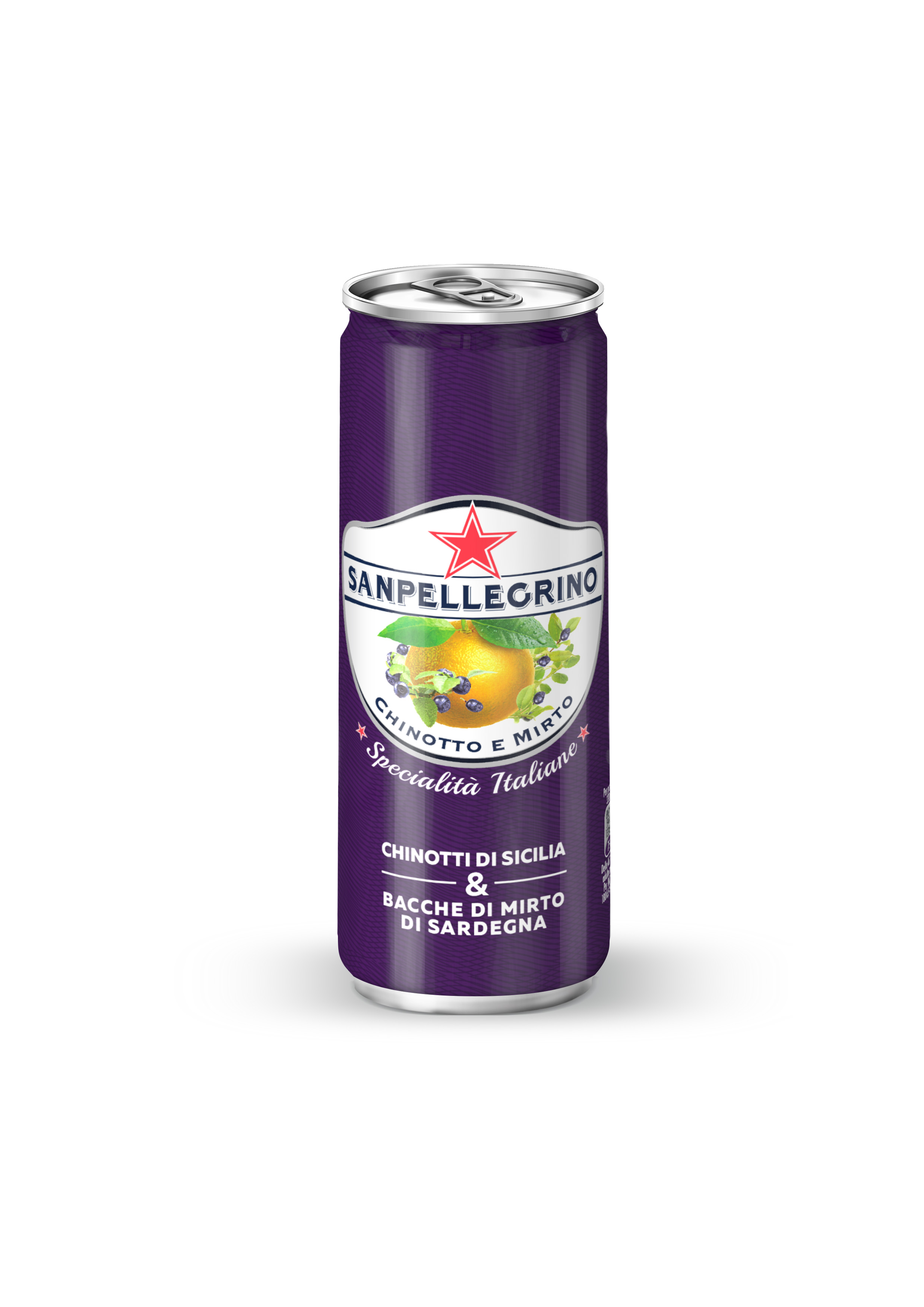 Le Specialità Italiane delle Bibite Sanpellegrino si trovano nel comodo formato della lattina sleek da 33 cl. Colori vivaci contraddistinguono i diversi gusti: viola acceso per Chinotti di Sicilia&Bacche di Mirto di Sardegna, rosa aranciato per Arance&Fichi d’India di Sicilia e verde chiaro per Limoni di Sicilia&Menta piperita del Piemonte. Al centro, lo scudo bianco incornicia l’immagine dei frutti maturi, sormontati dall’inconfondibile stella rossa di Sanpellegrino e il lettering in stile liberty. Bibite di qualità per una pausa di piacere all’insegna di un gusto tutto italiano.