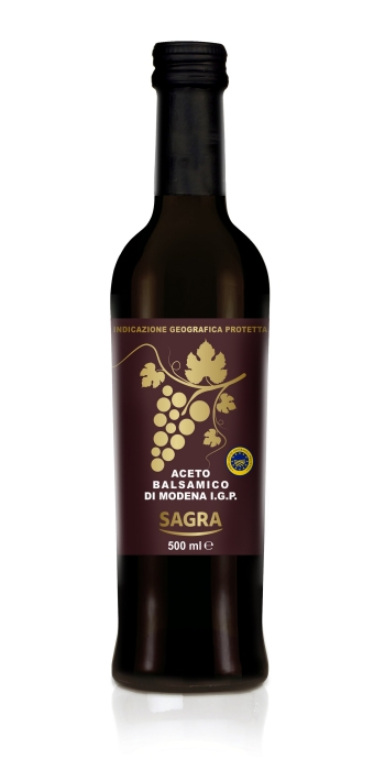 - Aceto Balsamico di Modena IGP Sagra: prodotto da uve accuratamente selezionate, ha un sapore inconfondibile e intenso ed è perfetto in abbinamento con il pregiato Olio Extra Vergine di Oliva Sagra, per completare ogni piatto con gli immancabili condimenti di un Italiano doc.