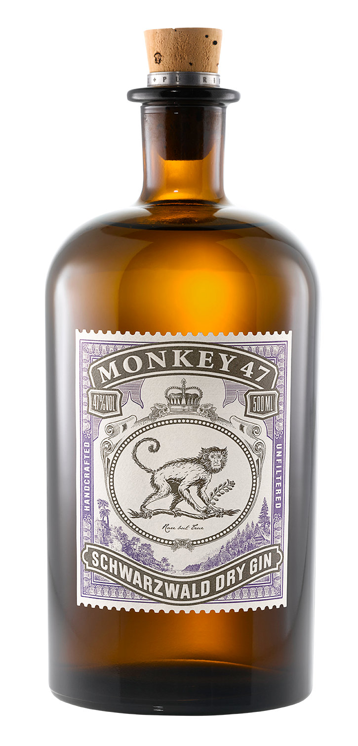 Un viaggio affascinante che inizia nel 1945, quando il comandante Montgomery Collins della Royal Air Force viene inviato a Berlino per ricostruire la città devastata dalla guerra. L’amicizia con Max, una scimmietta conosciuta allo zoo della città, lo segnò a tal punto che decise di dedicare al suo piccolo amico l’albergo che avrebbe aperto negli anni successivi nel cuore della Foresta Nera, The Wild Monkey. In quel contesto incantato nacque Monkey 47, un gin casalingo che racchiude tutti gli elementi naturali della Black Forest, gli ingredienti della tradizione britannica e l’esotismo orientale.