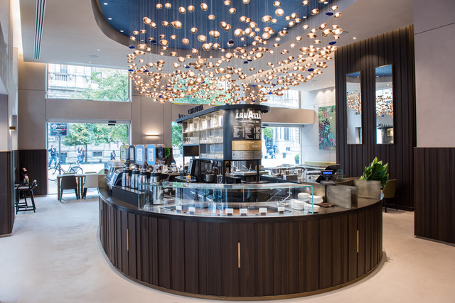 Apre domani nella centralissima ma un po’ defilata piazza San Fedele il primo Flagship Store targato Lavazza, un bar di 150 metri quadri e 60 posti a sedere tutto giocato sul dialogo tra tradizione e innovazione. Sia nello stile, legni scuri, specchi, un gusto vagamente retrò seppure moderno, sicuramente non modaiolo o “urlato” dovuto alla mano dello studio internazionale JHP – sia nella proposta, questa piuttosto virata verso l’innovazione, tra monorigini, nuove estrazioni e alta gastronomia.