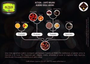 L’albero degli aromi. Lo ha sviluppato Milani spa per descrivere velocemente gli aromi sprigionati dal caffè. La grandezza dei cerchi determina l’intensità di quanto raffigurato