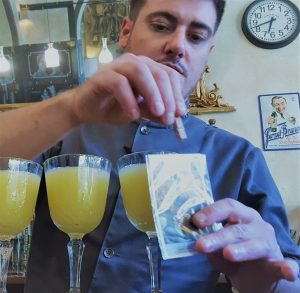 Quanto al Rubber e al Cappellaio Matto, cominciamo col dire che entrambi sono lasciati riposare dieci giorni prima di essere consumati. Il Rubber è a base di succo di lime, sciroppo di zucchero, gin, tisana al dragoncello e rosmarino. Il Cappellaio Matto, invece, è preparato con limone, sciroppo di zucchero, Bulleit bourbon, liquore al Chinotto, English tè breakfast con semi di lino e sesamo tostati, noce moscata. Tre cocktail ricercati, ma di facile fruibilità. Replicabili ovunque.