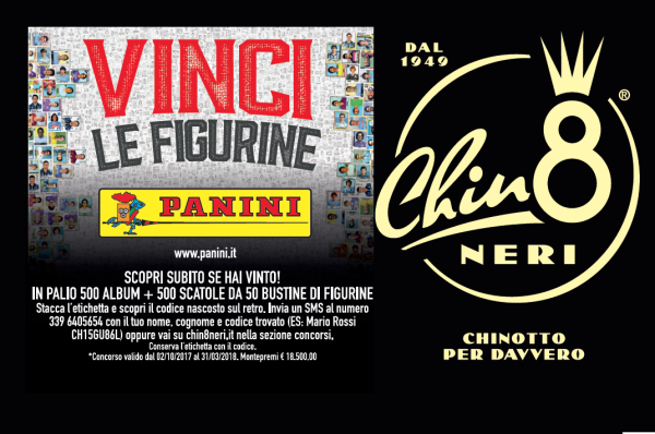 Dal 2 ottobre 2017 al 31 marzo 2018, infatti, acquistando Chin8, Aranciosa o Limoncedro Neri sarà possibile vincere n. 500 kit Panini composti ognuno da 1 album + 50 bustine di figurine delle nuove collezioni in uscita in Italia.