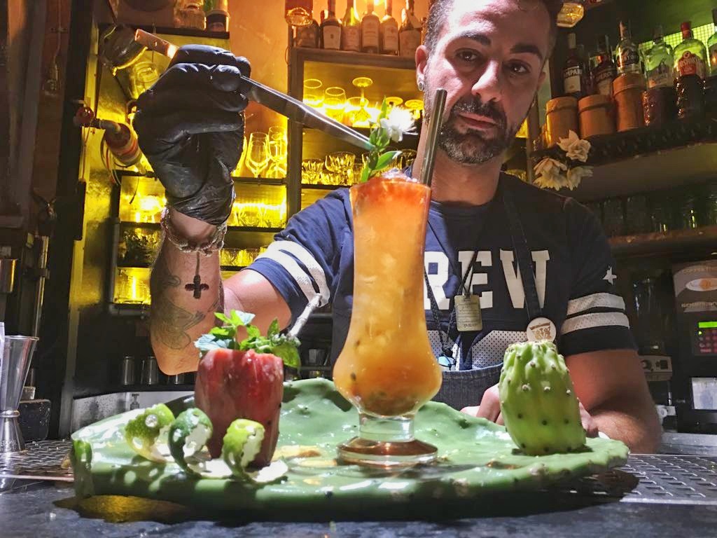 È il caso del siciliano Alejandro Giacalone, bar manager del Baretto Cocktail Bar di Santa Teresa di Gallura, un locale con una media di 500 drink a sera per lo più a base di frutta fresca. “Utilizziamo i frutti esotici – soprattutto mango, papaya, ananas, passion fruit e guava – per centrifughe, side e salse e recuperiamo bucce e foglie per le decorazioni. Ma cerco di dare spazio anche all’italianità e, in particolare, ai prodotti della mia isola. Il mio primo signature drink a base d’estratto di fichi d’India siciliani risale a quattro anni fa. Sulla sua scia, quest’anno ho ideato un nuovo drink a base di rum cubano, fico d’India e passion fruit, servito in una pala di fico d’India svuotata della polpa e pulita dalle spine contenente un side di purea di fichi”. Il suggerimento è interessante. E vi promettiamo di tornare a parlarne (sarà la nostra inchiesta cover di febbraio 2018).