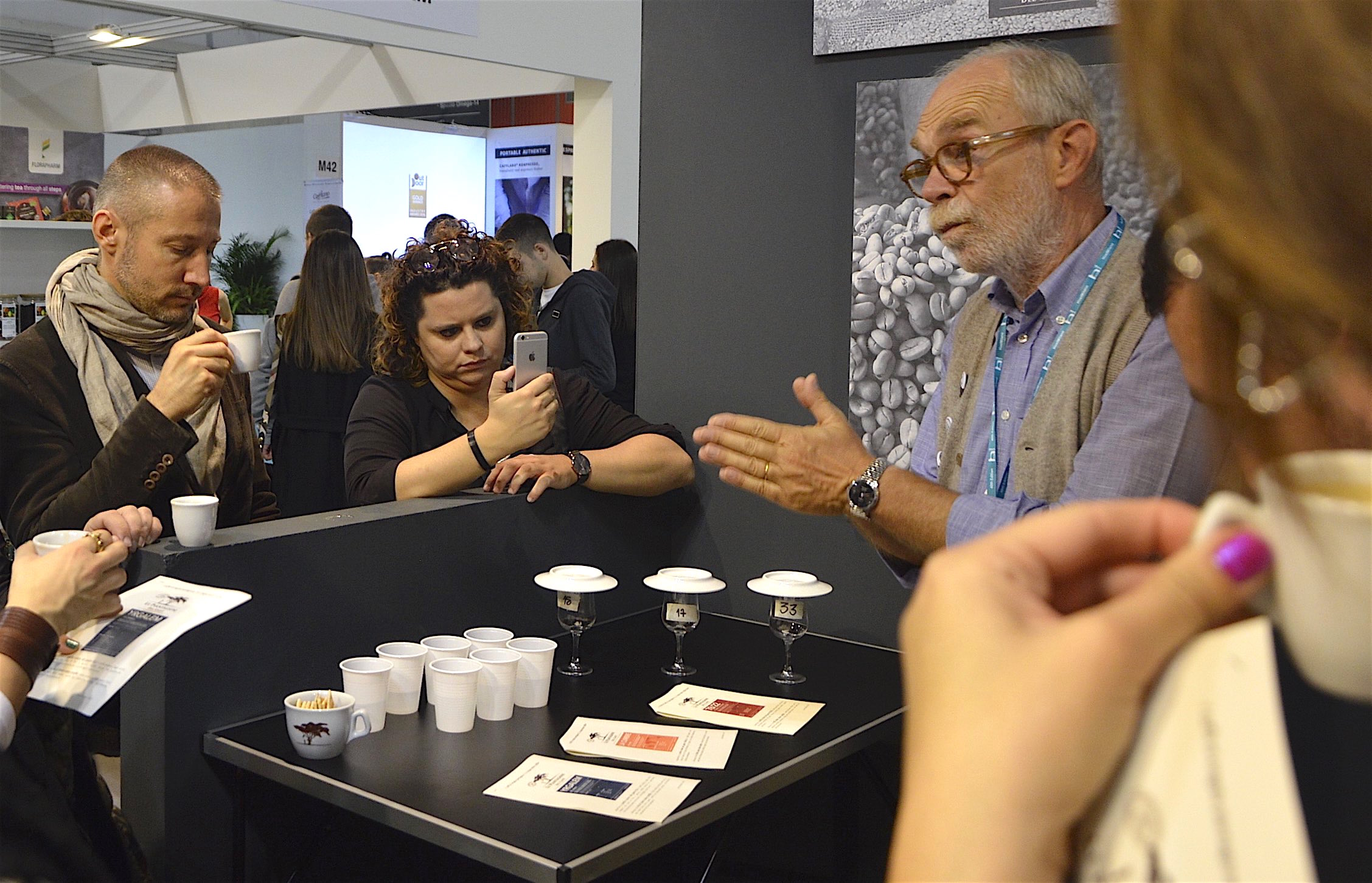 Sono state molto seguite le degustazioni guidate in espresso, proposte ogni giorno e precedute dall’analisi della percezione olfattiva di uno degli aromi predominanti di ognuno dei tre caffè proposti in degustazione; ad esempio la mandorla per l’Alto Palomar (profilo Verde), la nocciola tostata per il LAB#106 (profilo Giallo) e il tabacco per il 78/22 (profilo Rosso). Successivamente è stato quindi più semplice ritrovarli nei caffè degustati in espresso.