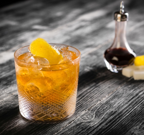 Preparazione: versare tutti gli ingredienti all'interno di un Mixing Glass, aggiungere sufficiente ghiaccio e mescolare per venti secondi circa. Filtrare all'interno della coppa e sprizzare la scorza sulla superficie del drink.