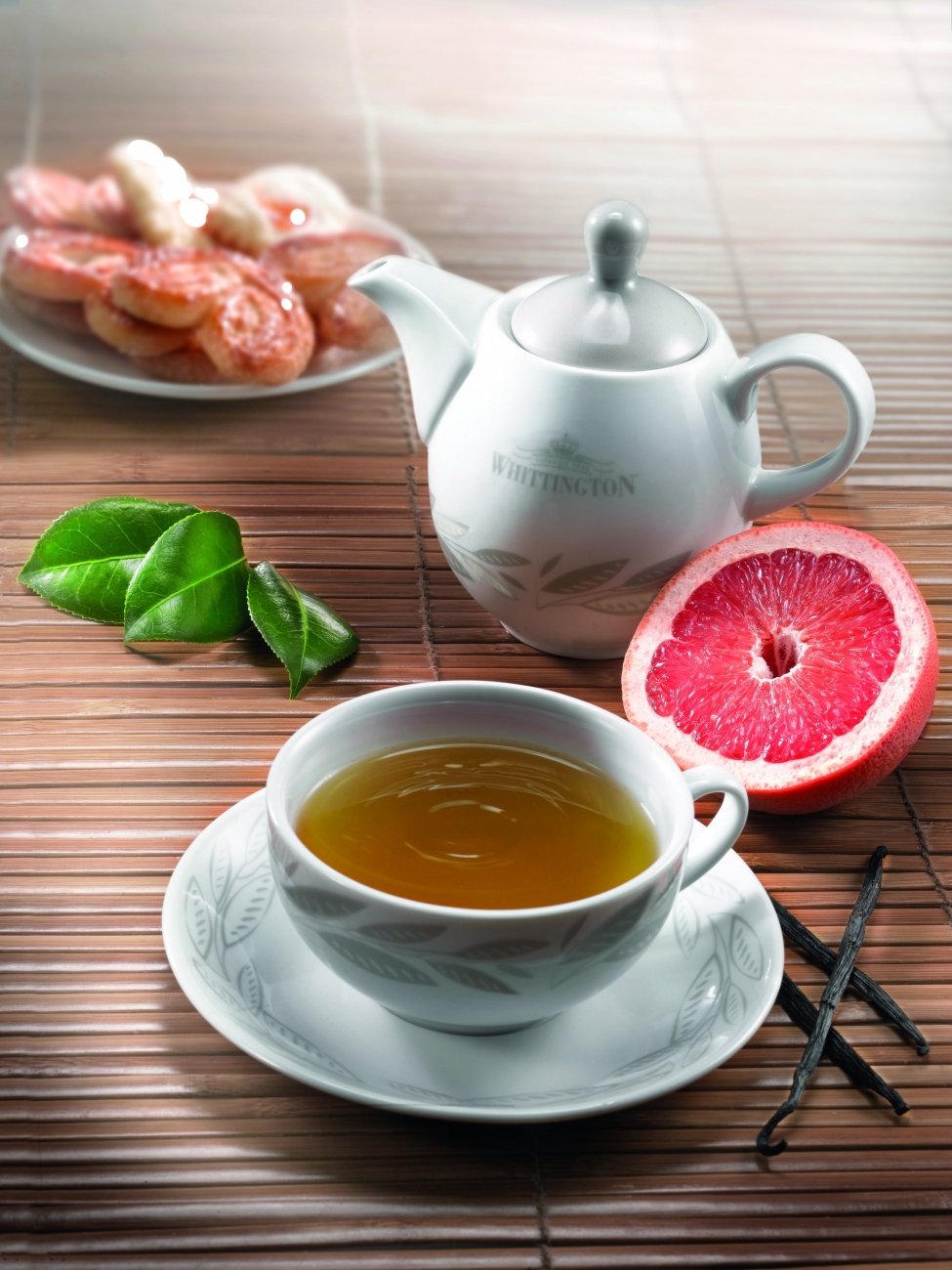 Packaging di prodotto, materiali di comunicazione e di servizio hanno una nuova grafica con un marchio più visibile e le materie prime protagoniste: le pregiate foglie che Whittington seleziona nei principali paesi di origine, diventano l’icona stilizzata simbolo della categoria di prodotto. Anche le nuove porcellane premium dal decoro moderno si ispirano alla materia prima; il colore grigio è caldo, elegante e semplicedaabbinare. Tra i rinnovati materiali di comunicazione, anche nuovo quadro da parete e nuovo menù