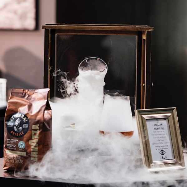 Il drink ItalianTonic(o) si caratterizza per intensità e corpo ed è proprio il tocco di Lavazza iTierra! Brasile 100% Arabica che permette al cocktail di accendere il palato senza che la sensazione sfiorisca nell’immediato. L’alternarsi delle combinazioni floreali del sambuco e tostate del caffè è molto piacevole al gusto, in una serie di tonalità in contrasto che sorprende a ogni sorso.