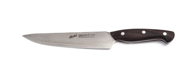Nella serie “San Mai” la lama si compone di una parte centrale in acciaio ad alto tenore di carbonio, particolarmente duro e resistente, che garantisce eccezionali prestazioni di taglio e un’ottima tenuta del filo all’usura, e da due strati esterni in acciaio inossidabile damascato, a 33 strati per lato, che conferiscono alla lama una maggiore resistenza alla corrosione e alla torsione. L’impugnatura in palissandro e il a pattern in damasco della lama rendono la collezione particolarmente preziosa e raffinata, destinata a farsi apprezzare dai collezionisti di tutto il mondo.