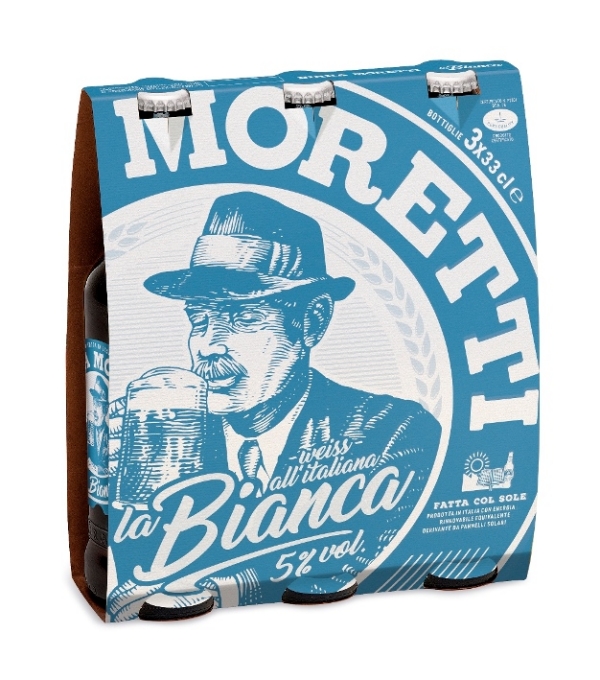 Birra Moretti La Bianca è la weiss all’italiana, una birra ad alta fermentazione, prodotta con malti 100% italiani: 50% malto d’orzo e 50% malto di frumento. Perfetta all’aperitivo come in abbinamento a piatti semplici, è la birra che ha conquistato una grande fetta di consumatori.