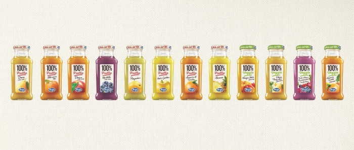 Una gamma di succhi equilibrati, contenenti solo gli zuccheri presenti nella frutta e nella verdura, gustosi, vellutati e naturalmente buoni, in distribuzione nei bar italiani nel formato da 200ml, con una novità anche nel look e nel packaging. La bottiglia è in vetro trasparente con la scritta in rilievo che fa riferimento all’anno di nascita del brand Yoga (1946), mentre l’etichetta dai tratti puliti e dallo stile elegantemente artigianale esalta l’immagine e la descrizione del prodotto.