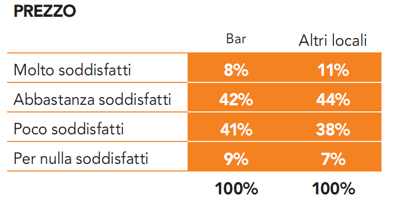 Vediamo ora la soddisfazione riguardo il prezzo, che comunque è solo terzo tra gli argomenti maggiormente dibattuti (anche in questo caso non analizziamo il cluster Ristorante poiché il prezzo dell’aperitivo non è praticamente dibattuto).