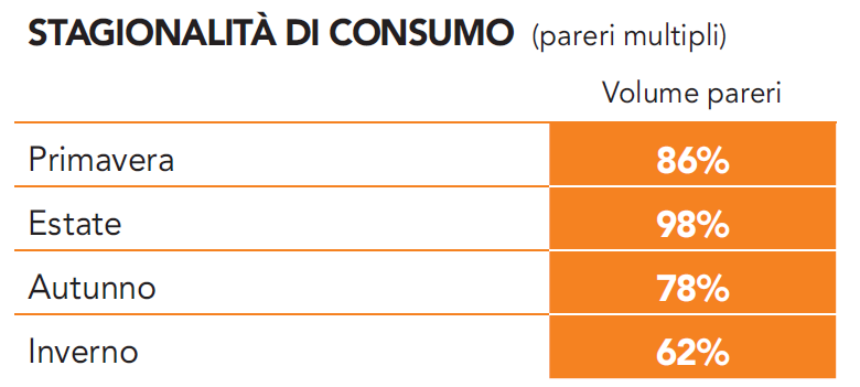 Stagionali, ma non troppo: sul web se ne parla anche in inverno e specialmente in modo competente. Basti pensare che i pareri degli influencer in proposito ammontano al 48% contro una media nazionale del 27%. In pratica quasi un parere su due è attribuibile ad un appassionato, ad un esperto, ad un intenditore. I pareri intercettati si sono aggregati nelle seguenti macro categorie: