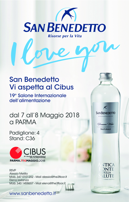 San Benedetto partecipa in grande stile alla 19^ edizione di Cibus, il Salone Internazionale del Cibo e dell’Alimentazione che riaprirà i battenti da lunedì 7 a giovedì 10 maggio a Parma. All’evento 2018, organizzato da Fiere di Parma e Federalimentare, sono previste circa tremila aziende espositrici e circa ottantamila operatori.