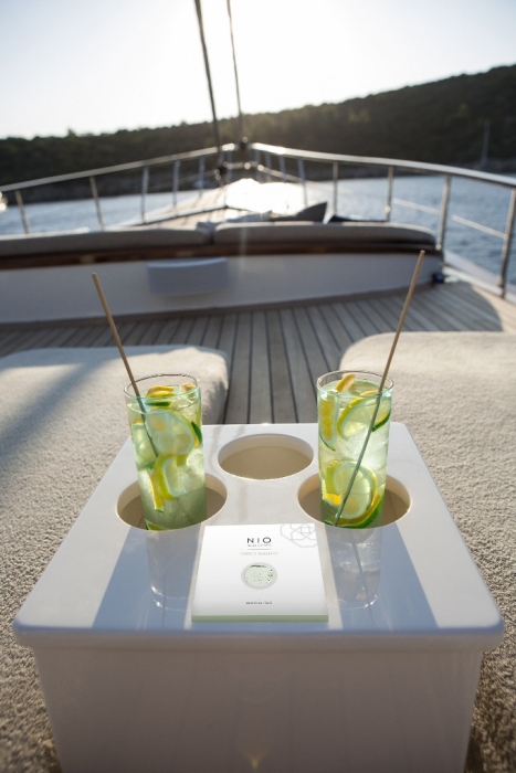 Grazie al confezionamento in buste singole, grandi quanto un CD, i cocktail NIO sono ideali anche da portare in viaggio: l’ingombro ridotto al minimo li rende pratici da trasportare e conservare anche in piccoli spazi come una sacca viaggio, la cambusa di una barca o nel bagaglio a mano in volo, eliminando il peso e il pericolo del vetro. Non resta quindi che scegliere il cocktail preferito, procurarsi il ghiaccio (lo si può ordinare on-line o comprare nei supermercati) e in due semplici gesti il cocktail NIO, già mixato, è pronto: basta agitare e strappare con la mano il bordo della confezione. Si versa il cocktail in un bicchiere