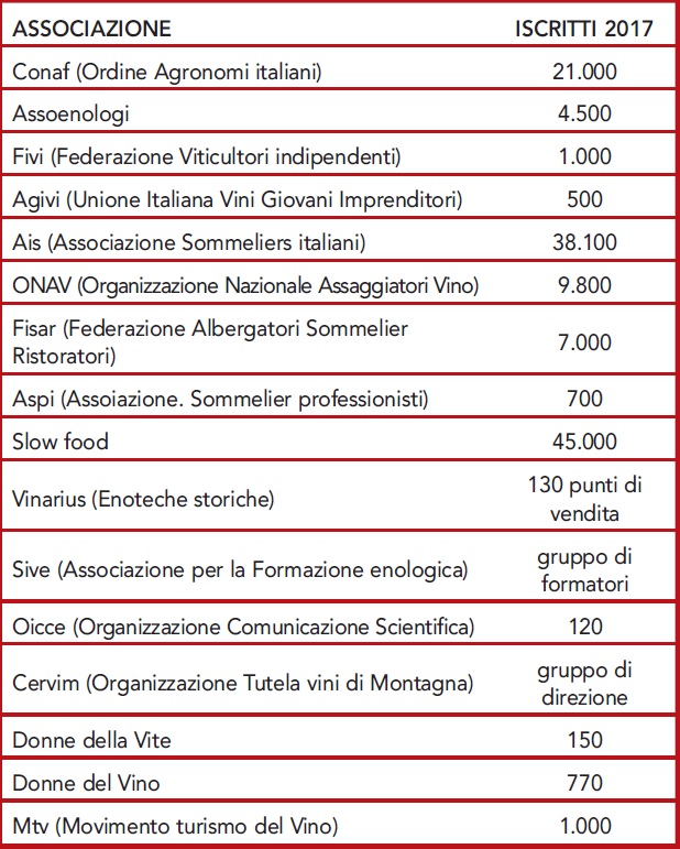 Alcuni mesi fa ONAV (Organizzazione Nazionale Assaggiatori Vino) e ASPI (Associazione Sommellerie Professionale Italiana) hanno firmato un accordo per garantire più completezza, professionalità e reciprocità alle rispettive metodologie didattiche. L’intesa avviene nel contesto di un mercato della formazione in campo enologico che negli ultimi anni ha dimostrato una crescita continua: +15% nel 2017 rispetto al 2016 (+13% nel 2016 sul 2015). A testimoniare il trend, l’analisi svolta sugli iscritti alle associazioni aderenti a Co.N.V.I (Consulta Nazionale Vino Italiano – vedi tabella). Attualmente l’ONAV forma ogni anno 1.700 persone e conta circa 10.000 iscritti tra enologi, cantinieri e addetti alla distribuzione. ASPI che di persone ne forma una ventina all’anno presenta circa 700 sommelier professionisti, la maggior parte dei quali impegnati nella ristorazione ad alto livello. Come spiega il Presidente Giuseppe Vaccarini: “ASPI offrirà la propria professionalità nella formazione di coppieri e sommelier professionisti, accompagnando questi soggetti attraverso un percorso unico nel proprio genere in Italia”. Fino al momento dell’accordo la didattica ASPI, grazie all’autorevolezza di Vaccarini, era l’unica in Italia a essere riconosciuta dalla prestigiosa Associazione della Sommellerie Internazionale (ASI) che rappresenta il Gotha dei professionisti in campo enologico a livello mondiale. Ora che anche il metodo formativo di ONAV godrà della stessa opportunità grazie ad alcuni step di formazione aggiuntiva, ha spiegato il Presidente Vito Intini, che ha poi proseguito l’intervista: “La nostra associazione offrirà le proprie competenze in campo tecnico-enologico nell’arte dell’assaggio, della formazione post-universitaria, nella formazione dei consumatori e dei tecnici a partire dal livello più semplice. [...] Grazie a questa alleanza i nostri soci potranno allargare i propri orizzonti ed essere in grado di dare un giudizio ancora più significativo, completo e autorevole sulla qualità del vino”.