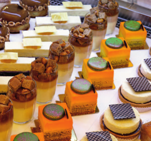 d’autore “olio EVO e frutta secca prendono spesso il posto di burro e grassi idrogenati”, aggiunge Assenza. Per quanto riguarda i formati, cresce l’interesse per le monoporzioni “che sono come un dolce al piatto del ristorante stellato in versione take away”, spiega Ernst Knam, il re del cioccolato, storico giudice di Bake Off Italia e proprietario della Pasticceria Ernst Knam a Milano. Accattivanti alla vista e al gusto, le monoporzioni rispondono a due esigenze: garantire al cliente, magari in alternativa ai classici mignon, la possibilità di assaggiare diverse tipologie di dolci e alzare i margini di guadagno senza compromettere ricerca e qualità delle materie prime. “Rispetto alle torte di classiche dimensioni, le monoporzioni hanno un prezzo di vendita leggermente più alto. Inoltre, nello stesso tempo, se ne riescono a produrre di più”, commenta Galileo Reposo, maestro pasticcere, responsabile di settore per Peck di Milano. Quanto al futuro, sono tutti d’accordo con Corrado Assenza: “La pasticceria sta assumendo un connotato da cucina, con preparazioni eseguite a ridosso del consumo”.
