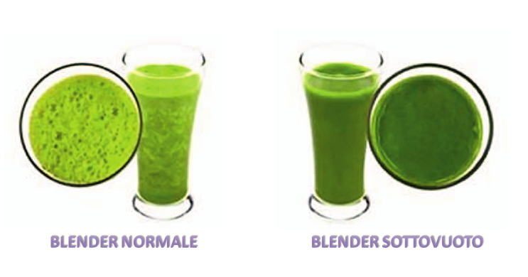 Passiamo ora a parlare del vantaggio numero uno: l’assenza di ossidazione grazie alla privazione d’aria. Normalmente i frullati andrebbero consumati immediatamente dopo la realizzazione perché l‘inserimento d’aria ne altera il colore e ne intacca il sapore. È provato che qualunque frullato saturo d’aria provoca anche maggiore gonfiore durante l’assunzione. I blender, a differenza delle centrifughe e ancor più degli estrattori, non possono lavorare a bassa velocità ed è per questo che è stato aggiunto il complemento per creare il vacuum – sottovuoto – e mantenere le proprietà nutritive delle materie prime lavorate. Riscaldamento e ossidazione non saranno più un problema. Il primo è tenuto sotto controllo dal blender stesso che segnala l’eccesso di calore e il secondo grazie al sottovuoto. In più, è proprio il sottovuoto a permettere di lasciar espandere le fibre degli ingredienti, facendo lavorare al meglio le lame e ottenendo frullati eccellenti.