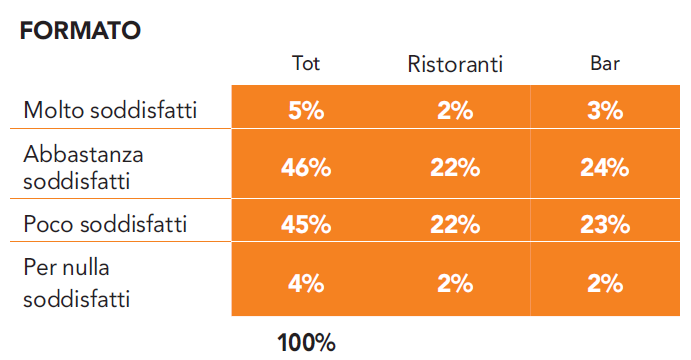 Analizziamo ora il livello di soddisfazione riguardo il Formato, ripartito per locale dove viene consumata l’acqua.