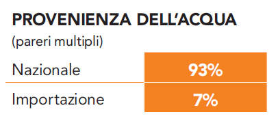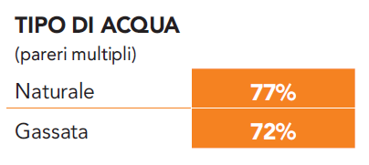 Nel canale Ho.Re.Ca. si consuma quasi esclusivamente acqua nazionale; è quasi inesistente la ripartizione dei giudizi per tipologia di acqua, mentre quella macroscopica tra acqua naturale e gassata è quasi in equilibrio.