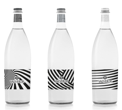 Ispirandosi alle famose opere di Franco Grignani, pittore e grafico italiano, esponente della Op Art – la corrente artistica che studia e gioca con le illusioni ottiche, che per enfatizzare l’effetto ottico e le distorsioni visive usava a volte vetro industriale sui suoi quadri - la nuova bottiglia Valverde Black & White è abilmente percorsa da strisce bianche e nere più lineari e geometriche per la versione naturale, più mosse e dinamiche per la leggermente frizzanti fino ad assumere, per la versione frizzante, sembianze di vortici che ingannano la vista.