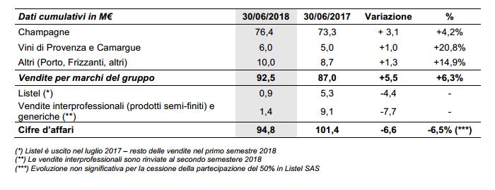 Questi sono i dati riassuntivi del primo semestre 2018, diffusi dal Gruppo Vranken-Pommery Monopole lunedì scorso 16 luglio.