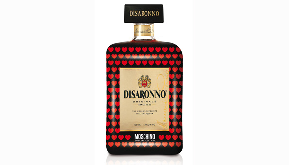 La bottiglia vestirà i colori nero e rosso con una fantasia di cuori, icona Moschino per eccellenza. Un look fresco e ironico che riflette le caratteristiche della casa di moda, e che si sposa alla perfezione con l’inconfondibile silhouette della bottiglia Disaronno.