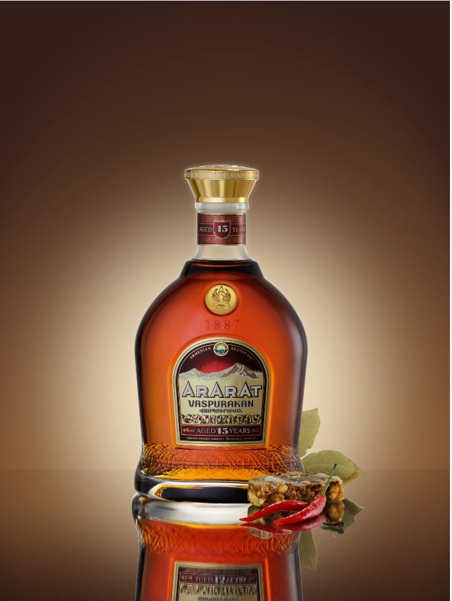Vaspurakan: Invecchiato 15 anni, presenta un intenso color ambra, con un tocco di oro antico. Il suo aroma è strutturato e complesso, con sentori di spezie, legno affumicato e frutta secca, tipico della botte di quercia caucasica. Prezzo al pubblico consigliato: 50€.