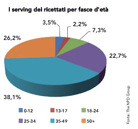 In linea con quanto si rileva più in generale per le bevande calde, i ricettati sono consumati prevalentemente da un pubblico adulto: oltre il 64% di chi li richiede ha più di 35 anni, con una punta superiore al 70% nel caso delle proposte a base di orzo. Un fattore che gioca a sfavore della categoria: «Rispetto ad altri target, gli avventori più adulti – osserva Matteo Figura, responsabile Foodservice NPD in Italia – sono quelli che hanno fatto segnare i minori tassi di crescita nei consumi fuori casa». Se le bevande calde incontrano in pari misura il gusto di uomini e donne, orzo, ginseng e le altre “alternative” conquistano soprattutto i palati femminili: l’universo rosa in questo caso incide per quasi il 63% dei serving, con un picco del 67,3% fatto registrare dal ginseng.