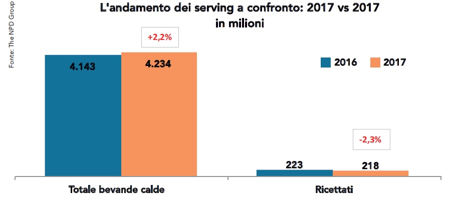 compensato il calo accusato dai preparati a base di orzo, che in soli dodici mesi hanno lasciato sul tappeto ben il 17,3 milioni di consumazioni. Il che, tradotto in altri termini, significa una flessione del 20% delle consumazioni». Il risultato è una perdita complessiva per i ricettati del 2,3%, riconducibile principalmente a tre ragioni. «La prima – spiega il manager – rimanda alla riconquista dei territori persi dalla tradizionale tazzina di caffè, che ha saputo riconquistare l’attenzione del suo pubblico, penalizzando soprattutto il consumo di orzo. La seconda riguarda, invece, la più generale tendenza a ridurre le voci considerate accessorie nella composizione del menu dei pasti principali: una tendenza che ha impattato negativamente proprio sulle bevande alternative. La terza, infine, riguarda la perdita di appeal registrata nel percepito dell’orzo, che tuttavia racchiude in sé anche un risvolto incoraggiante, perché spinge i gestori alla ricerca di nuove proposte». E i numeri lo confermano: nel 2017 le bevande realizzate con ingredienti diversi da caffè, orzo o ginseng sono arrivate a pesare il 9% del totale del segmento, spinte da un balzo del 9% rispetto al 2016.
