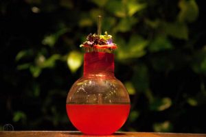 Per il Weed Cordial usiamo 6 gr di marijuana medica per litro di acqua. Prima aromatizziamo l’acqua con un distillatore discontinuo in borosilicato chiamato Cirano e poi la diluiamo con il 50% di zucchero e, per stabilizzare e acidificare il liquido, con 9 gr per litro di acido citrico e 5 gr per litro di acido tartarico. Una volta terminato, il drink viene inserito in un sacchetto di carta fata riempito con un Volcano (vaporizzatore) di vapore al profumo di erba che viene riscaldata fino a una temperatura massima di 180 gradi. Servito a tavola con l’intero sacchetto che dispone di una cannuccia questa presentazione coinvolge la parte olfattiva e diverte i clienti.