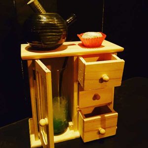 Nello sportellino una bottiglietta (tipo medicinale antico) con infuso di cannabis in vodka, ottenuto con l’estrazione ad ultrasuoni